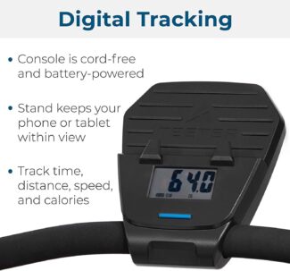 • Easy-to-read digital console: Track your time, distance, calories, and speed with a quick glance.